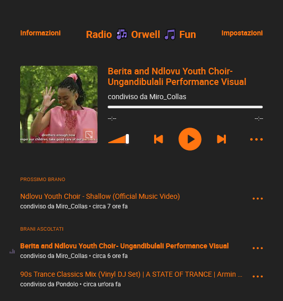 Radio Orwell Fun Community è una sorta di podcast, non è una radio in diretta, poiché la playlist si compone dai brani condivisi nel Fediverso.